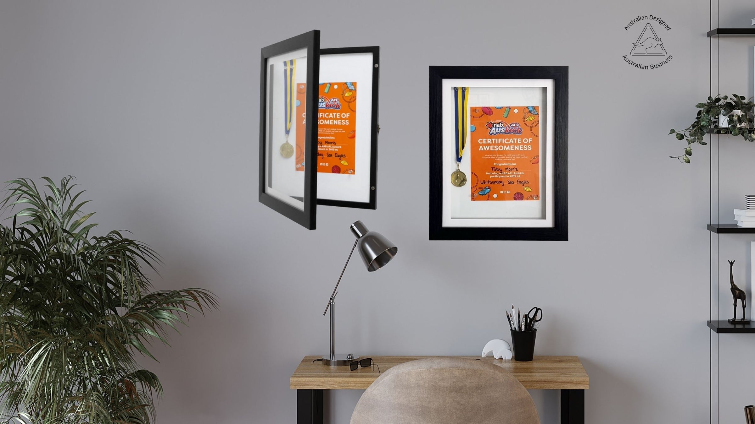 Designed in Australia. Brilliant Frames are the only front opening, 2 cms deep shadow box picture frame with magnetic whiteboard inside;